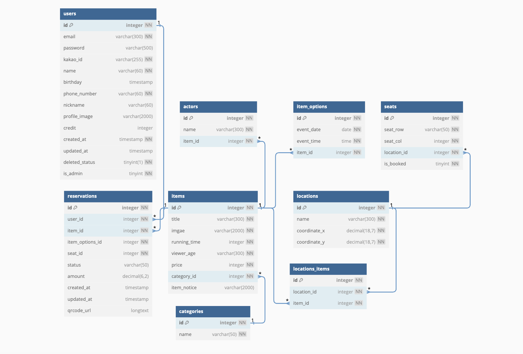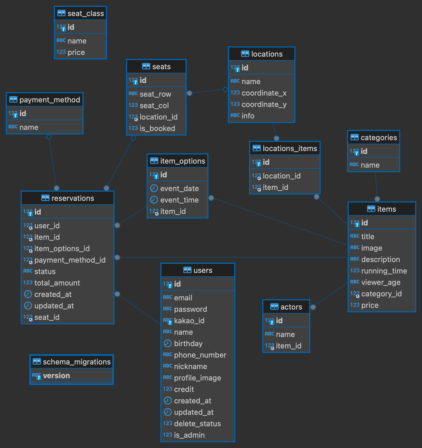 프로젝트의 초기 아이디어는 티켓 예매 사이트를 개발하는 것이었다. 그러나 3주의 기간 중 1주가 지난 뒤, 우리는 DB에서 큰 문제가 있음을 발견했다. 초기에는 공연, 뮤지컬, 전시, 콘서트 등 다양한 이벤트를 다루기 위해 장소, 등급에 따른 좌석위치 등을 통일하려고 했으나, 이는 서비스의 본질과는 거리가 먼 생각이었다.